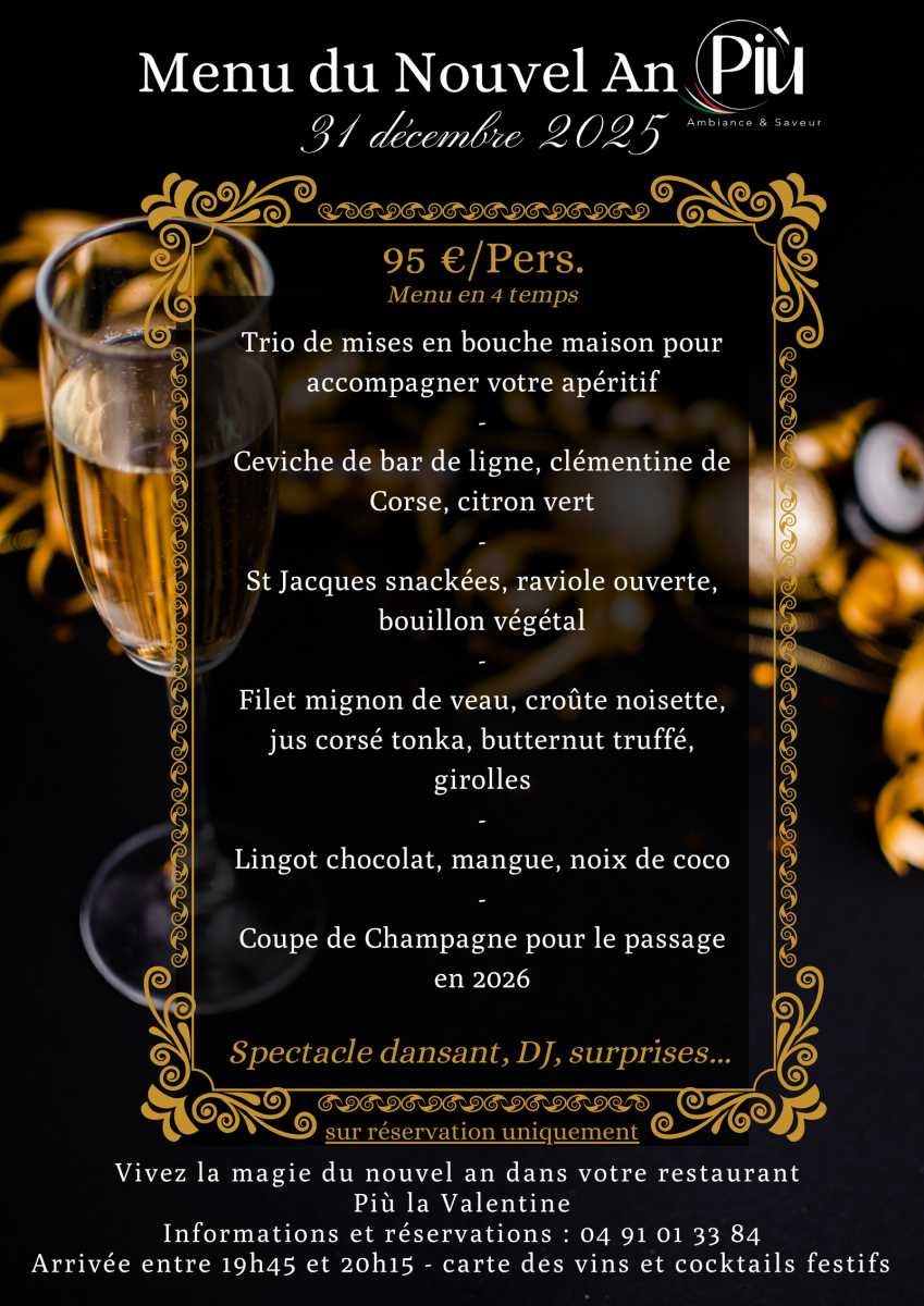 Pour célébrer la soirée du 31 décembre, les restaurants Piu dévoilent un menu spécialement imaginé pour faire vivre une expérience gourmande, festive et mémorable. Une soirée pensée comme un véritable voyage culinaire, entre produits nobles, associations raffinées et ambiance élégante.